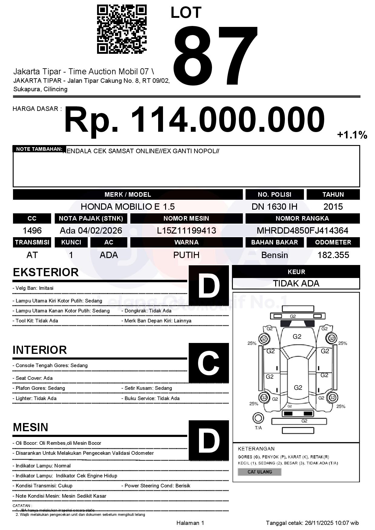 - Kondisi objek lelang dilelang apa adanya, baik kondisi fisik, mesin maupun legalitas kendaraan. Jika terdapat kekurangan/cacat baik yang terlihat maupun yang tidak terlihat, maka semua akan menjadi tanggung jawab/risiko Pemenang Lelang. Oleh karena itu, Pemenang Lelang melepaskan segala hak untuk menuntut dan/atau meminta ganti rugi atas hal tersebut kepada JBA.