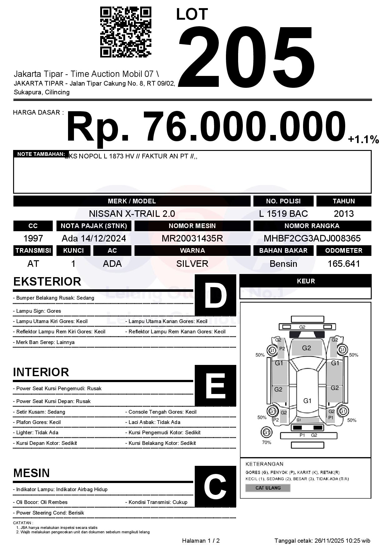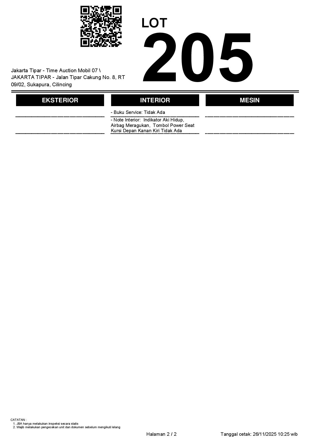 - Kondisi objek lelang dilelang apa adanya, baik kondisi fisik, mesin maupun legalitas kendaraan. Jika terdapat kekurangan/cacat baik yang terlihat maupun yang tidak terlihat, maka semua akan menjadi tanggung jawab/risiko Pemenang Lelang. Oleh karena itu, Pemenang Lelang melepaskan segala hak untuk menuntut dan/atau meminta ganti rugi atas hal tersebut kepada JBA.