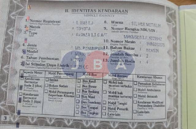 TOYOTA AVANZA G 1.3 SILVER METALIK 2020