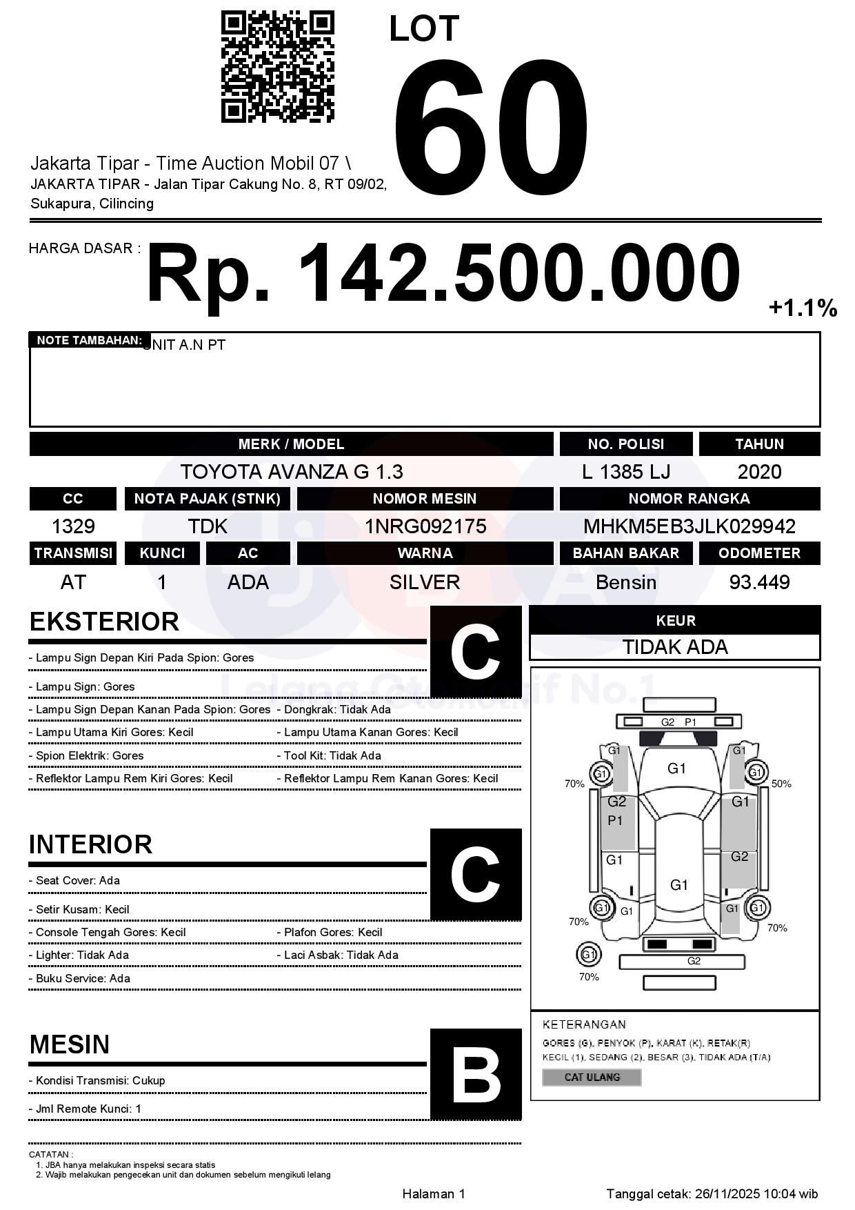 - Kondisi objek lelang dilelang apa adanya, baik kondisi fisik, mesin maupun legalitas kendaraan. Jika terdapat kekurangan/cacat baik yang terlihat maupun yang tidak terlihat, maka semua akan menjadi tanggung jawab/risiko Pemenang Lelang. Oleh karena itu, Pemenang Lelang melepaskan segala hak untuk menuntut dan/atau meminta ganti rugi atas hal tersebut kepada JBA.