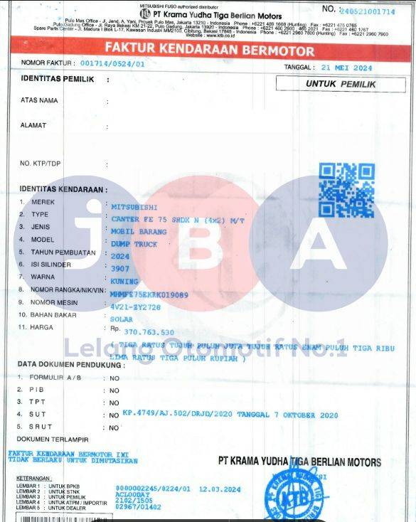 - Biaya pemindahan objek lelang dan pengurusan balik nama pada dokumen kepemilikan merupakan tanggung jawab dan beban dari Pemenang Lelang.