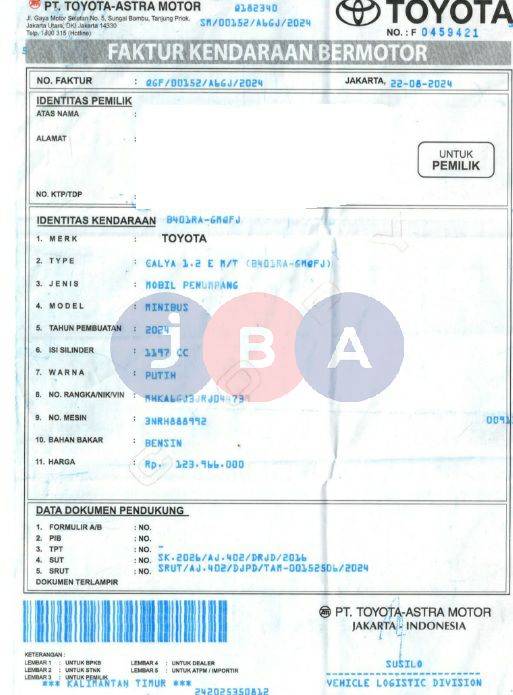 - Kondisi objek lelang dilelang apa adanya, baik kondisi fisik, mesin maupun legalitas kendaraan. Jika terdapat kekurangan/cacat baik yang terlihat maupun yang tidak terlihat, maka semua akan menjadi tanggung jawab/risiko Pemenang Lelang. Oleh karena itu, Pemenang Lelang melepaskan segala hak untuk menuntut dan/atau meminta ganti rugi atas hal tersebut kepada JBA.