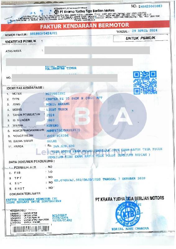- Biaya pemindahan objek lelang dan pengurusan balik nama pada dokumen kepemilikan merupakan tanggung jawab dan beban dari Pemenang Lelang.