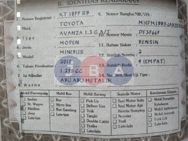 TOYOTA AVANZA G 1.3 ABU ABU METALIK 2010