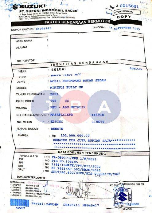 - Kondisi objek lelang dilelang apa adanya, baik kondisi fisik, mesin maupun legalitas kendaraan. Jika terdapat kekurangan/cacat baik yang terlihat maupun yang tidak terlihat, maka semua akan menjadi tanggung jawab/risiko Pemenang Lelang. Oleh karena itu, Pemenang Lelang melepaskan segala hak untuk menuntut dan/atau meminta ganti rugi atas hal tersebut kepada JBA.