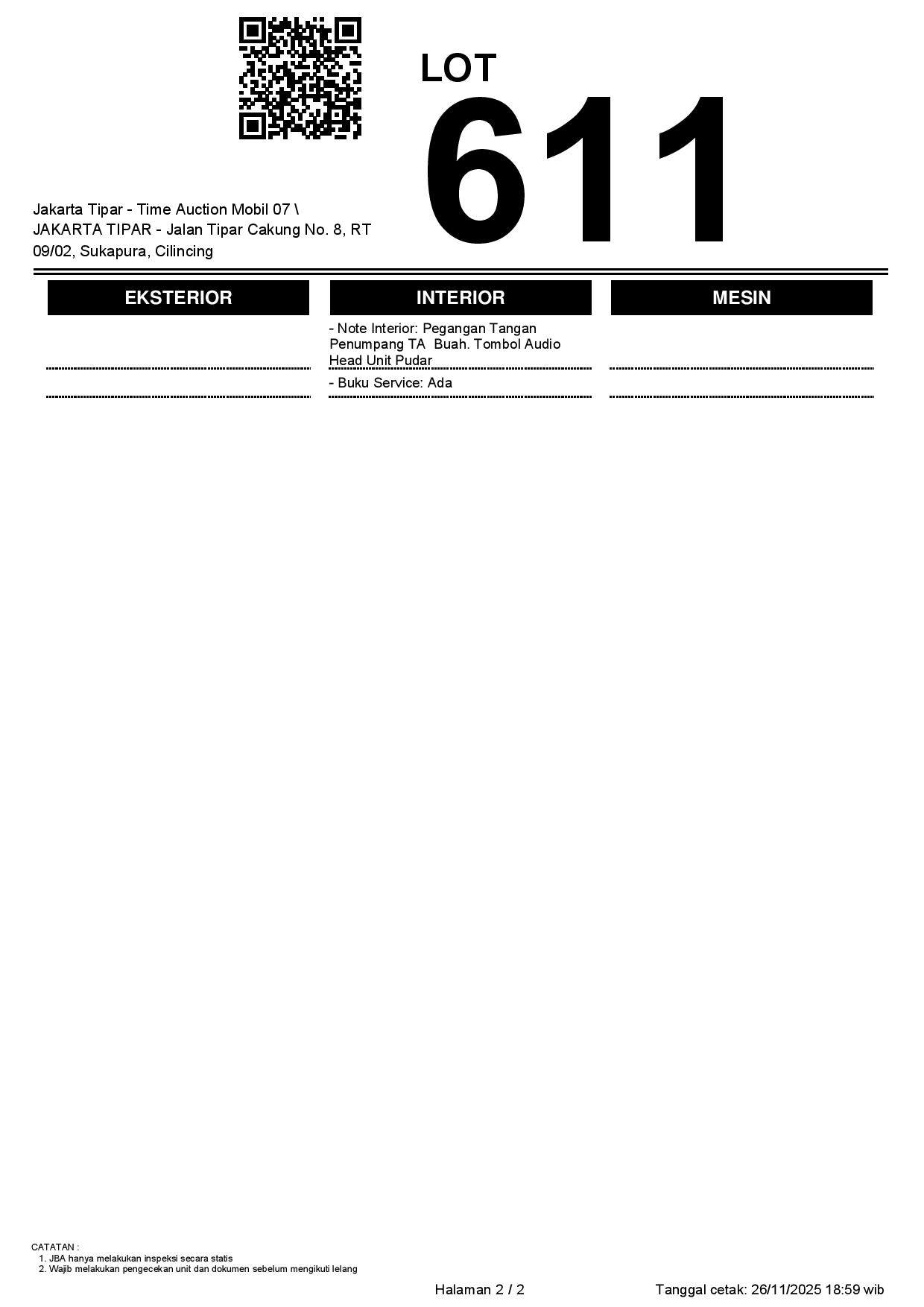 - Kondisi objek lelang dilelang apa adanya, baik kondisi fisik, mesin maupun legalitas kendaraan. Jika terdapat kekurangan/cacat baik yang terlihat maupun yang tidak terlihat, maka semua akan menjadi tanggung jawab/risiko Pemenang Lelang. Oleh karena itu, Pemenang Lelang melepaskan segala hak untuk menuntut dan/atau meminta ganti rugi atas hal tersebut kepada JBA.