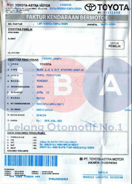 - Biaya pemindahan objek lelang dan pengurusan balik nama pada dokumen kepemilikan merupakan tanggung jawab dan beban dari Pemenang Lelang.