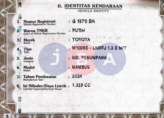 TOYOTA W100RE-LMDFJ 1.3 E M/T HITAM METALIK 2024