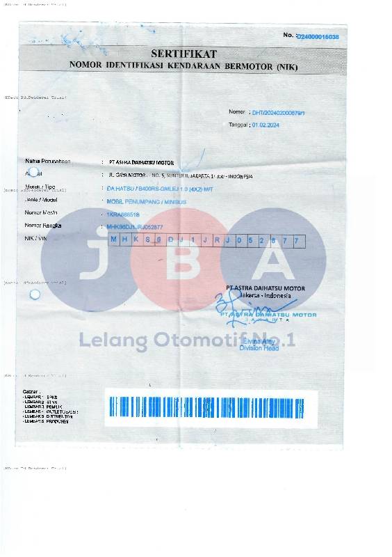 - Kondisi objek lelang dilelang apa adanya, baik kondisi fisik, mesin maupun legalitas kendaraan. Jika terdapat kekurangan/cacat baik yang terlihat maupun yang tidak terlihat, maka semua akan menjadi tanggung jawab/risiko Pemenang Lelang. Oleh karena itu, Pemenang Lelang melepaskan segala hak untuk menuntut dan/atau meminta ganti rugi atas hal tersebut kepada JBA.