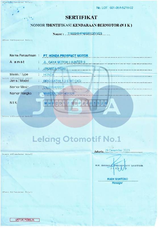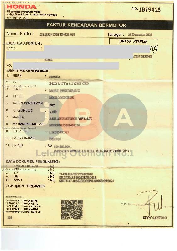 - Dokumen kepemilikan akan diserahkan kepada Pemenang Lelang sesuai dengan jadwal yang tercantum dalam katalog objek lelang, dan Berita Acara Pemenang Lelang (BAPL) akan diberikan oleh JBA kepada Pemenang Lelang setelah pembayaran harga terbentuk atau pada saat pengambilan unit objek lelang.