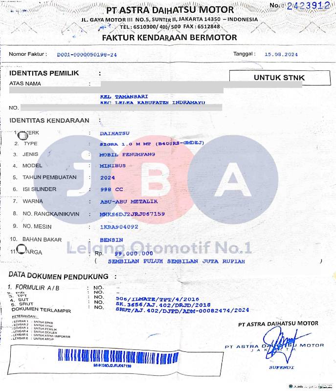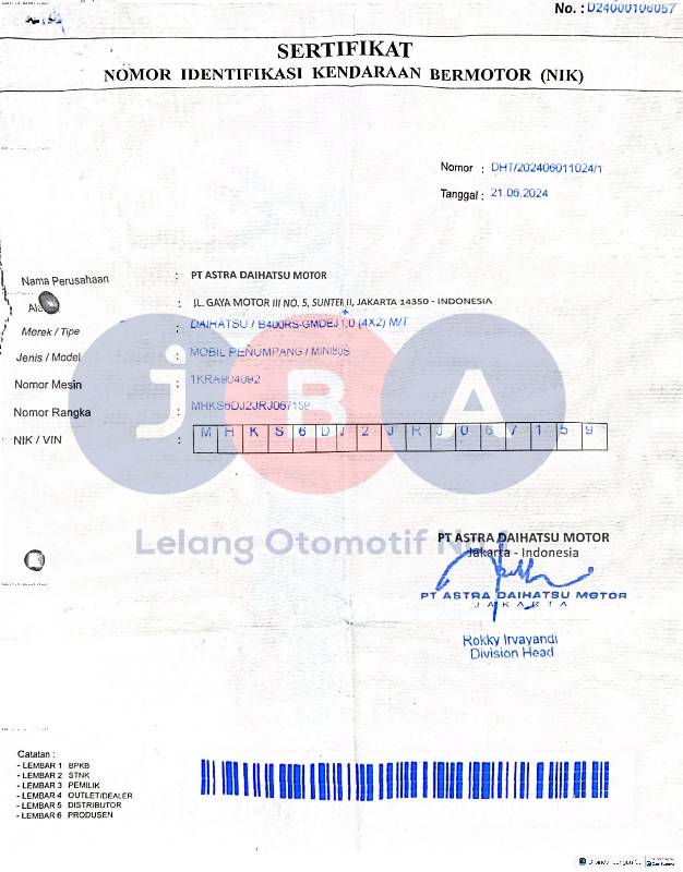 - Kondisi objek lelang dilelang apa adanya, baik kondisi fisik, mesin maupun legalitas kendaraan. Jika terdapat kekurangan/cacat baik yang terlihat maupun yang tidak terlihat, maka semua akan menjadi tanggung jawab/risiko Pemenang Lelang. Oleh karena itu, Pemenang Lelang melepaskan segala hak untuk menuntut dan/atau meminta ganti rugi atas hal tersebut kepada JBA.