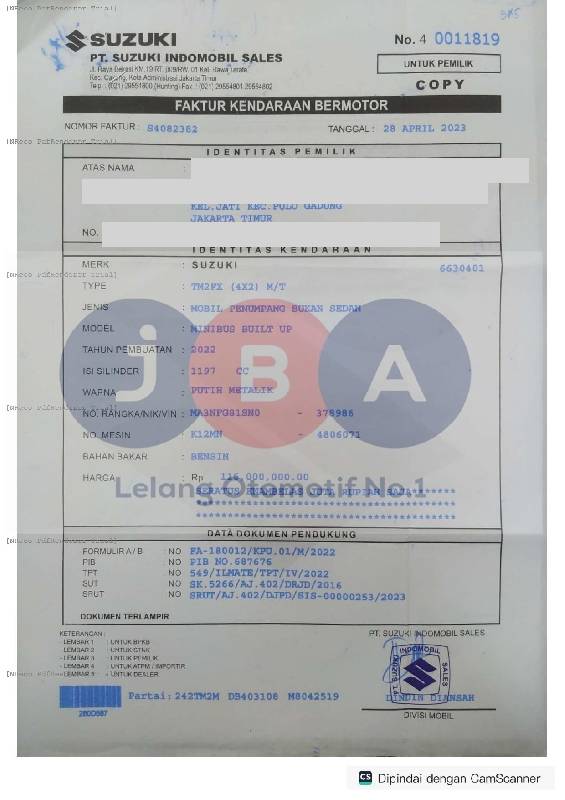 - Kondisi objek lelang dilelang apa adanya, baik kondisi fisik, mesin maupun legalitas kendaraan. Jika terdapat kekurangan/cacat baik yang terlihat maupun yang tidak terlihat, maka semua akan menjadi tanggung jawab/risiko Pemenang Lelang. Oleh karena itu, Pemenang Lelang melepaskan segala hak untuk menuntut dan/atau meminta ganti rugi atas hal tersebut kepada JBA.