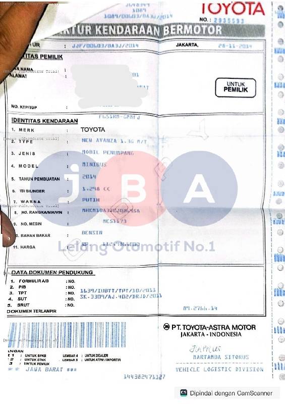 - Atas Nama : PT JBA INDONESIA