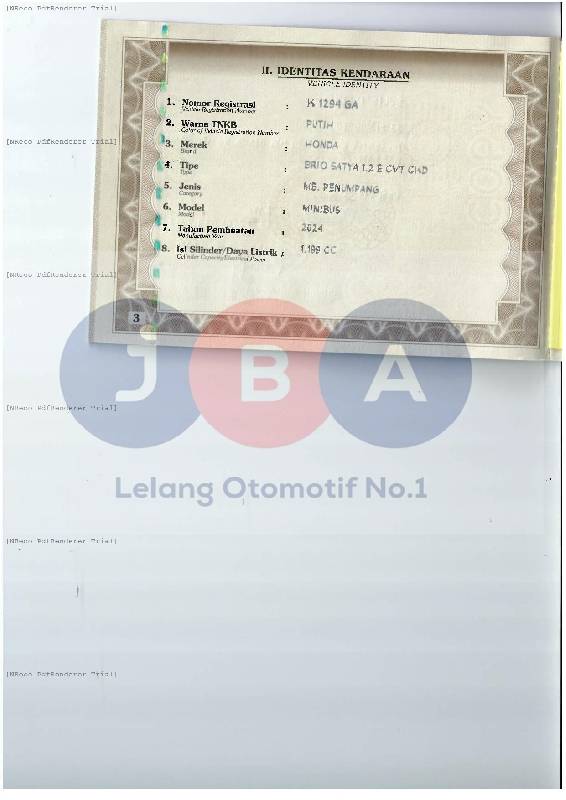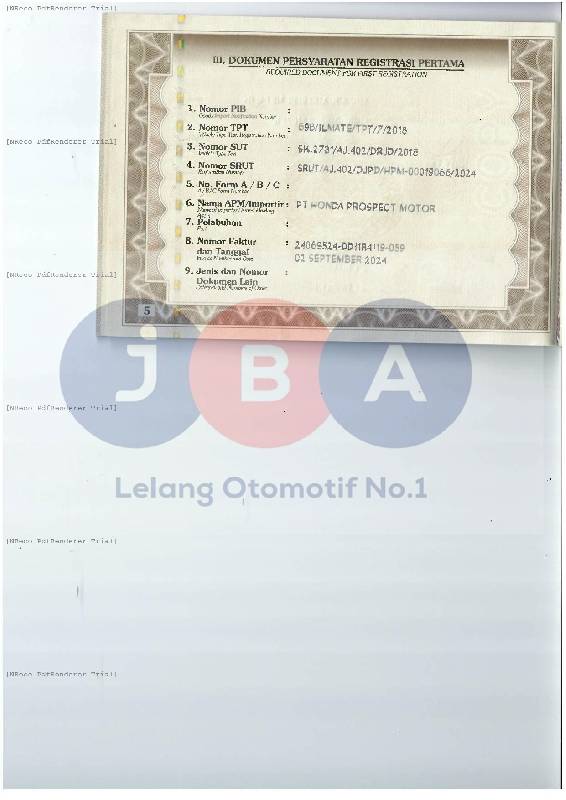- Kondisi objek lelang dilelang apa adanya, baik kondisi fisik, mesin maupun legalitas kendaraan. Jika terdapat kekurangan/cacat baik yang terlihat maupun yang tidak terlihat, maka semua akan menjadi tanggung jawab/risiko Pemenang Lelang. Oleh karena itu, Pemenang Lelang melepaskan segala hak untuk menuntut dan/atau meminta ganti rugi atas hal tersebut kepada JBA.