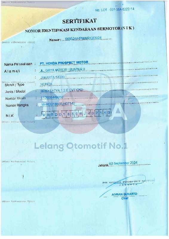 - Dokumen kepemilikan akan diserahkan kepada Pemenang Lelang sesuai dengan jadwal yang tercantum dalam katalog objek lelang, dan Berita Acara Pemenang Lelang (BAPL) akan diberikan oleh JBA kepada Pemenang Lelang setelah pembayaran harga terbentuk atau pada saat pengambilan unit objek lelang.