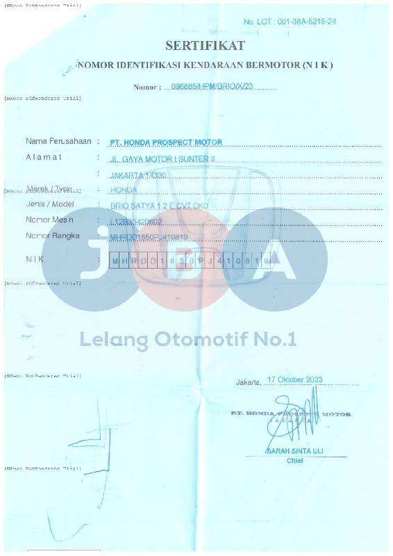 - Dokumen kepemilikan akan diserahkan kepada Pemenang Lelang sesuai dengan jadwal yang tercantum dalam katalog objek lelang, dan Berita Acara Pemenang Lelang (BAPL) akan diberikan oleh JBA kepada Pemenang Lelang setelah pembayaran harga terbentuk atau pada saat pengambilan unit objek lelang.