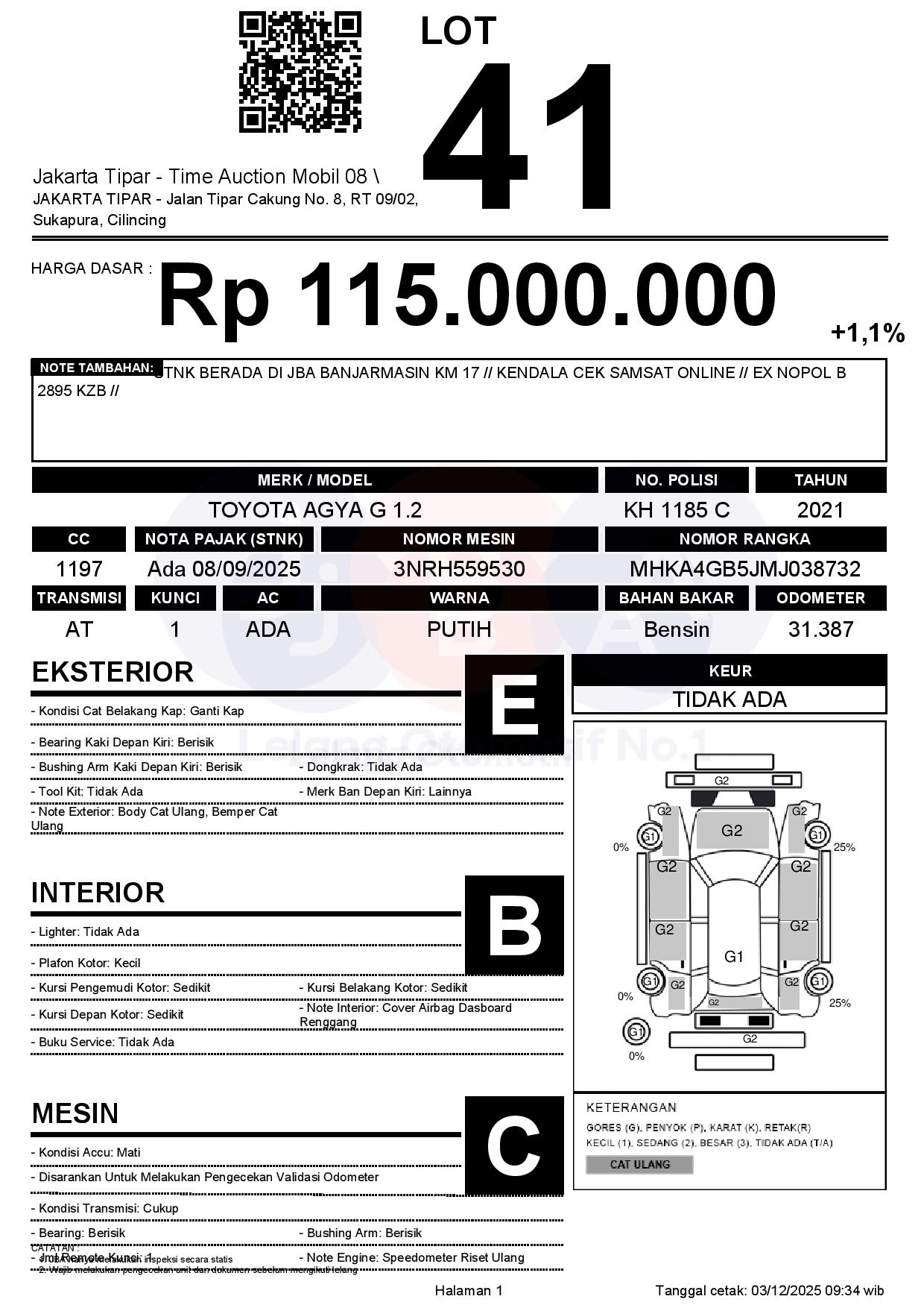 - Kondisi objek lelang dilelang apa adanya, baik kondisi fisik, mesin maupun legalitas kendaraan. Jika terdapat kekurangan/cacat baik yang terlihat maupun yang tidak terlihat, maka semua akan menjadi tanggung jawab/risiko Pemenang Lelang. Oleh karena itu, Pemenang Lelang melepaskan segala hak untuk menuntut dan/atau meminta ganti rugi atas hal tersebut kepada JBA.