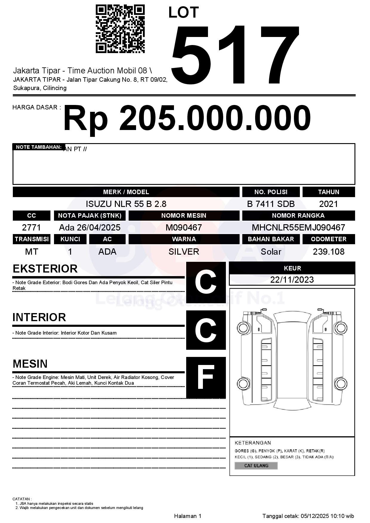 - Kondisi objek lelang dilelang apa adanya, baik kondisi fisik, mesin maupun legalitas kendaraan. Jika terdapat kekurangan/cacat baik yang terlihat maupun yang tidak terlihat, maka semua akan menjadi tanggung jawab/risiko Pemenang Lelang. Oleh karena itu, Pemenang Lelang melepaskan segala hak untuk menuntut dan/atau meminta ganti rugi atas hal tersebut kepada JBA.