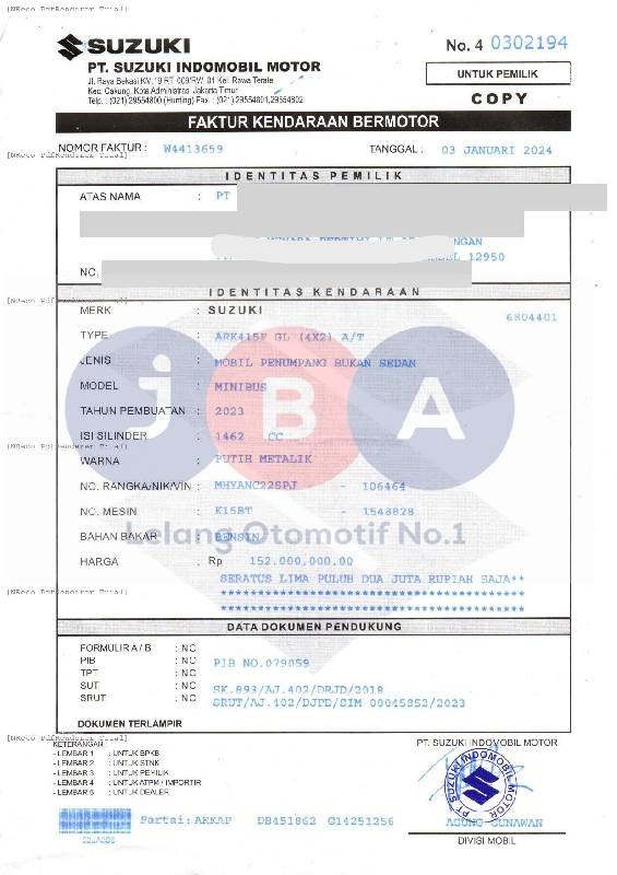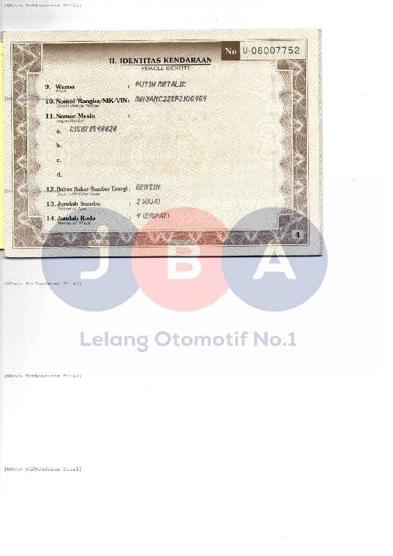 - Kondisi objek lelang dilelang apa adanya, baik kondisi fisik, mesin maupun legalitas kendaraan. Jika terdapat kekurangan/cacat baik yang terlihat maupun yang tidak terlihat, maka semua akan menjadi tanggung jawab/risiko Pemenang Lelang. Oleh karena itu, Pemenang Lelang melepaskan segala hak untuk menuntut dan/atau meminta ganti rugi atas hal tersebut kepada JBA.
