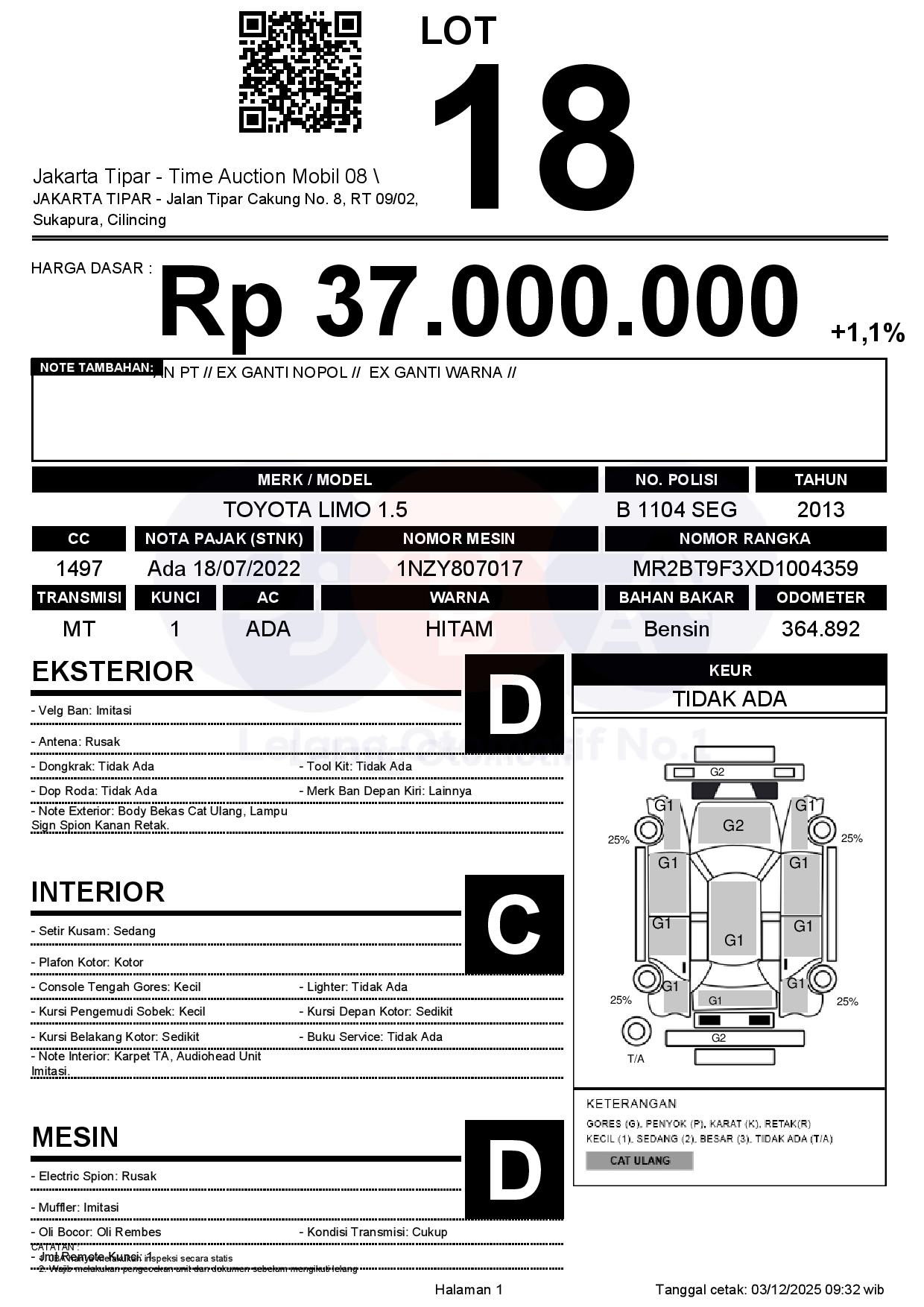 - Pemenang Lelang wajib melunasi total harga terbentuk sebelum batas waktu pelunasan.