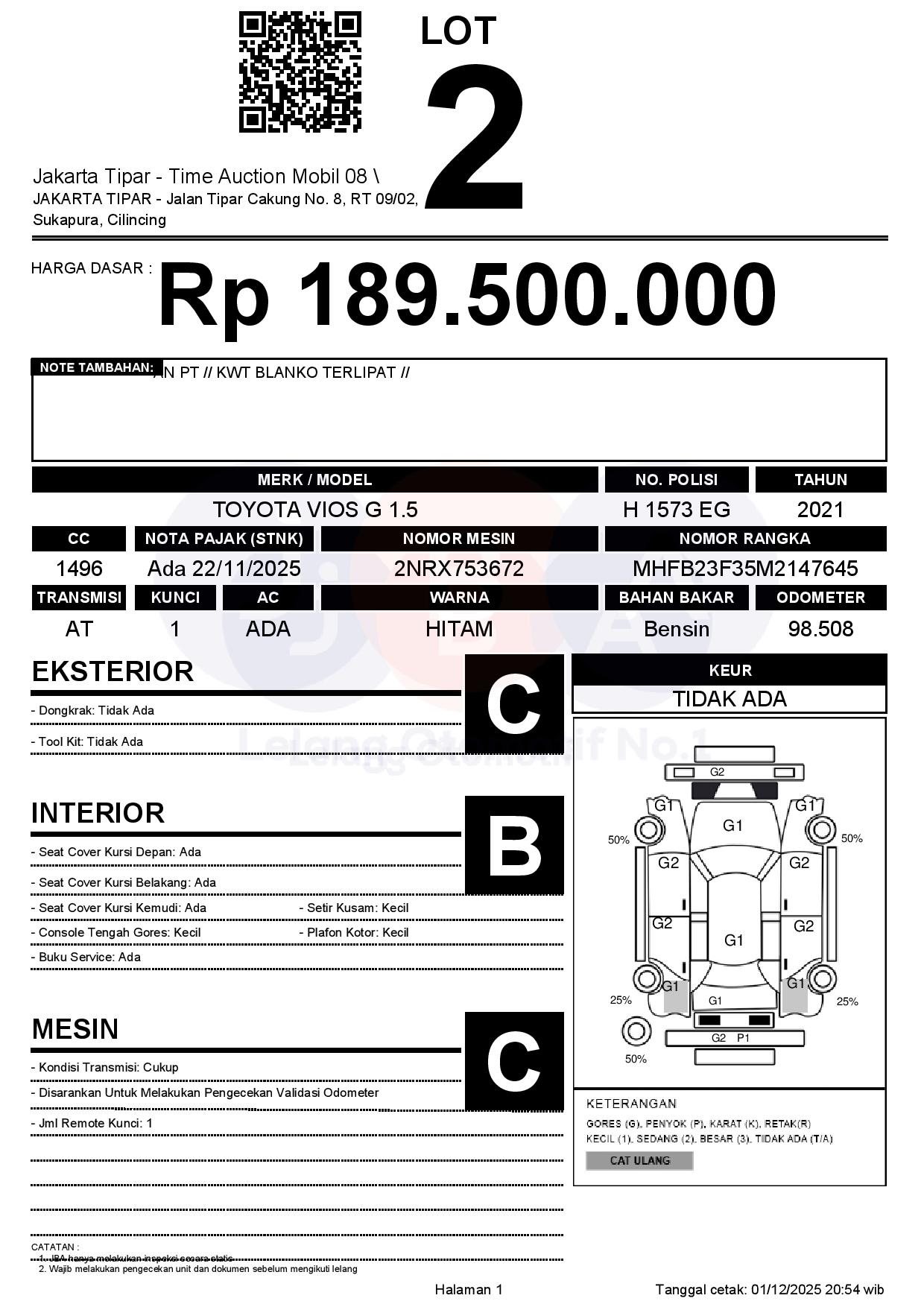 - Kondisi objek lelang dilelang apa adanya, baik kondisi fisik, mesin maupun legalitas kendaraan. Jika terdapat kekurangan/cacat baik yang terlihat maupun yang tidak terlihat, maka semua akan menjadi tanggung jawab/risiko Pemenang Lelang. Oleh karena itu, Pemenang Lelang melepaskan segala hak untuk menuntut dan/atau meminta ganti rugi atas hal tersebut kepada JBA.