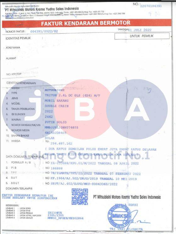 - Biaya pemindahan objek lelang dan pengurusan balik nama pada dokumen kepemilikan merupakan tanggung jawab dan beban dari Pemenang Lelang.