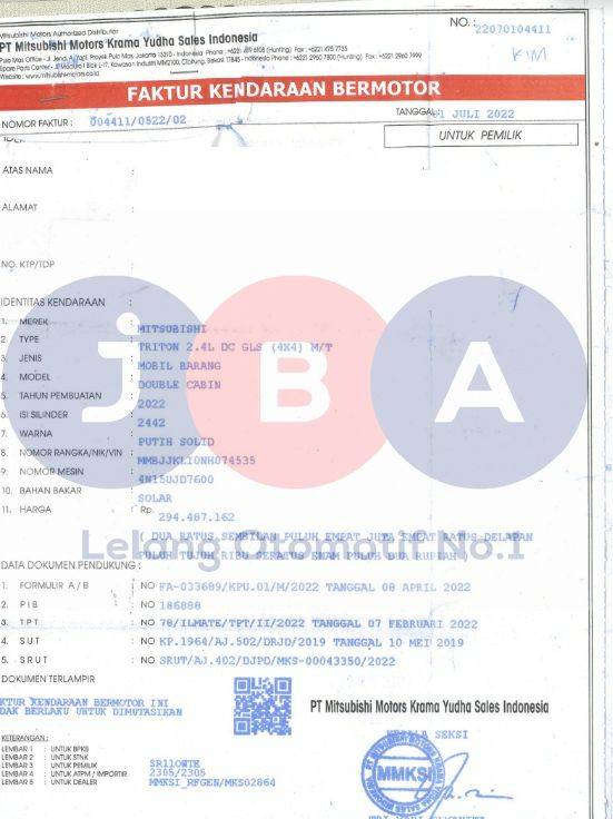 - Atas Nama : PT JBA INDONESIA