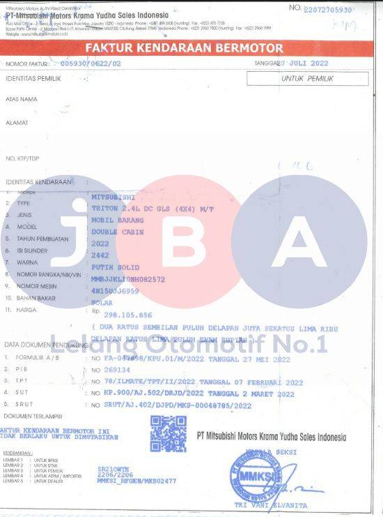 - Dokumen kepemilikan akan diserahkan kepada Pemenang Lelang sesuai dengan jadwal yang tercantum dalam katalog objek lelang, dan Berita Acara Pemenang Lelang (BAPL) akan diberikan oleh JBA kepada Pemenang Lelang setelah pembayaran harga terbentuk atau pada saat pengambilan unit objek lelang.