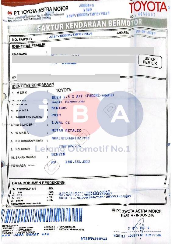 TOYOTA RUSH 1.5 S A/T (F800RE-GQGFJ) HITAM METALIK 2019