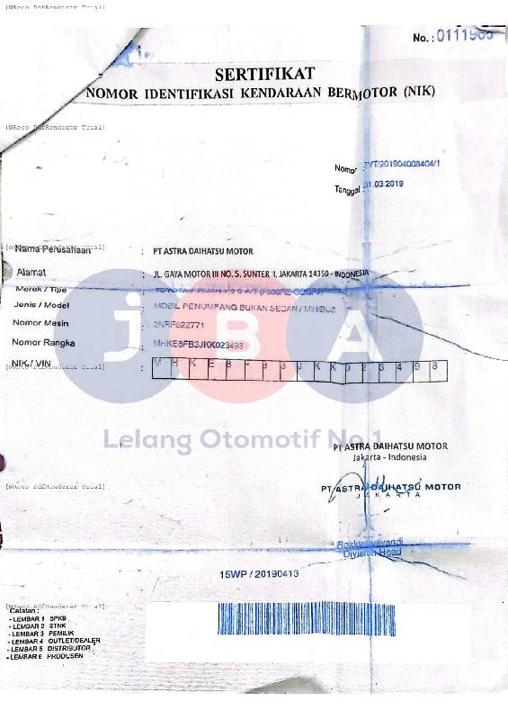 - Atas Nama : PT JBA INDONESIA