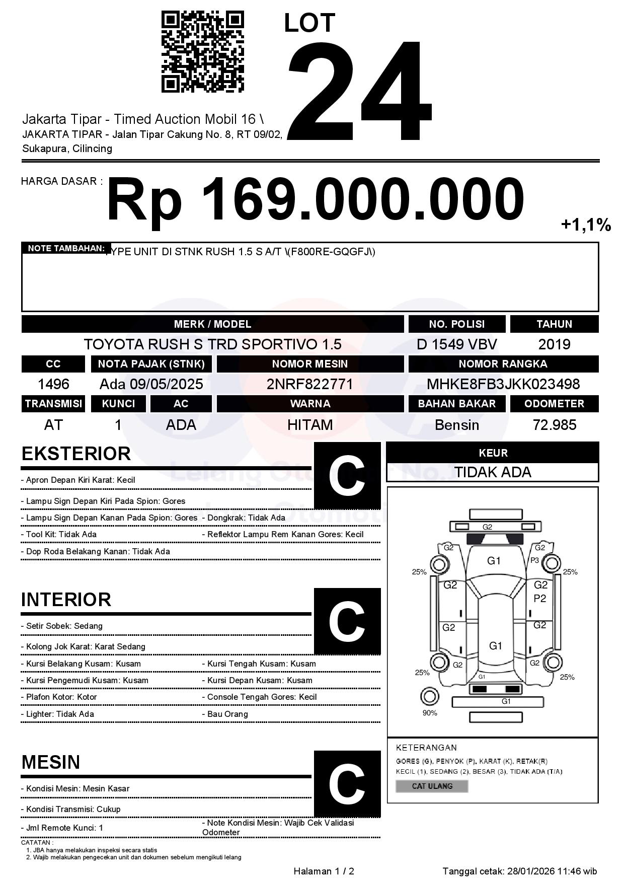 - Kondisi objek lelang dilelang apa adanya, baik kondisi fisik, mesin maupun legalitas kendaraan. Jika terdapat kekurangan/cacat baik yang terlihat maupun yang tidak terlihat, maka semua akan menjadi tanggung jawab/risiko Pemenang Lelang. Oleh karena itu, Pemenang Lelang melepaskan segala hak untuk menuntut dan/atau meminta ganti rugi atas hal tersebut kepada JBA.