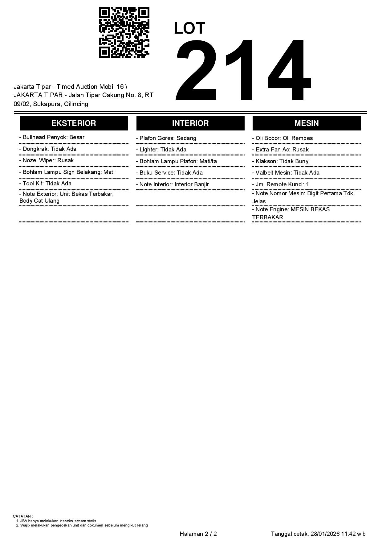 - Kondisi objek lelang dilelang apa adanya, baik kondisi fisik, mesin maupun legalitas kendaraan. Jika terdapat kekurangan/cacat baik yang terlihat maupun yang tidak terlihat, maka semua akan menjadi tanggung jawab/risiko Pemenang Lelang. Oleh karena itu, Pemenang Lelang melepaskan segala hak untuk menuntut dan/atau meminta ganti rugi atas hal tersebut kepada JBA.