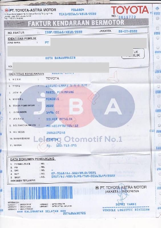 - Atas Nama : PT JBA INDONESIA