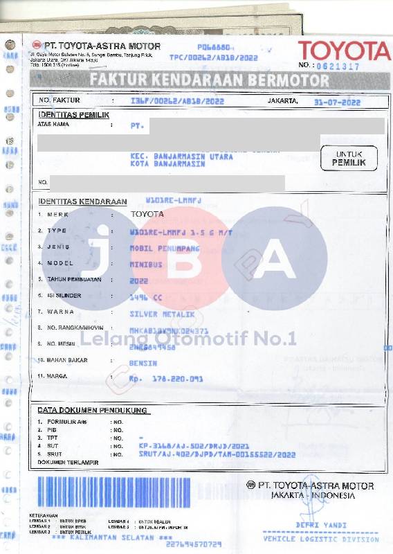 - Kondisi objek lelang dilelang apa adanya, baik kondisi fisik, mesin maupun legalitas kendaraan. Jika terdapat kekurangan/cacat baik yang terlihat maupun yang tidak terlihat, maka semua akan menjadi tanggung jawab/risiko Pemenang Lelang. Oleh karena itu, Pemenang Lelang melepaskan segala hak untuk menuntut dan/atau meminta ganti rugi atas hal tersebut kepada JBA.