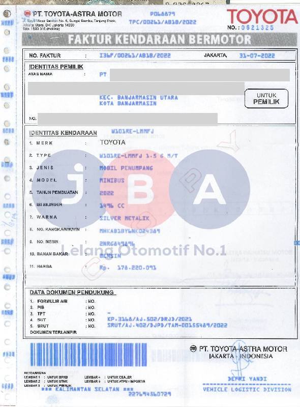- Atas Nama : PT JBA INDONESIA