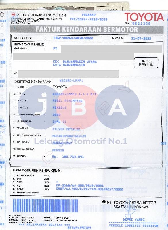 - Atas Nama : PT JBA INDONESIA
