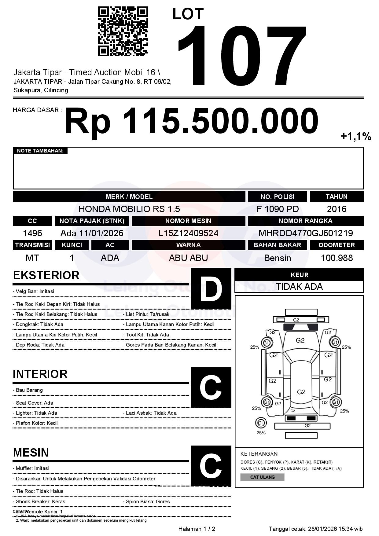 - Harga Awal Rp 115.500.000