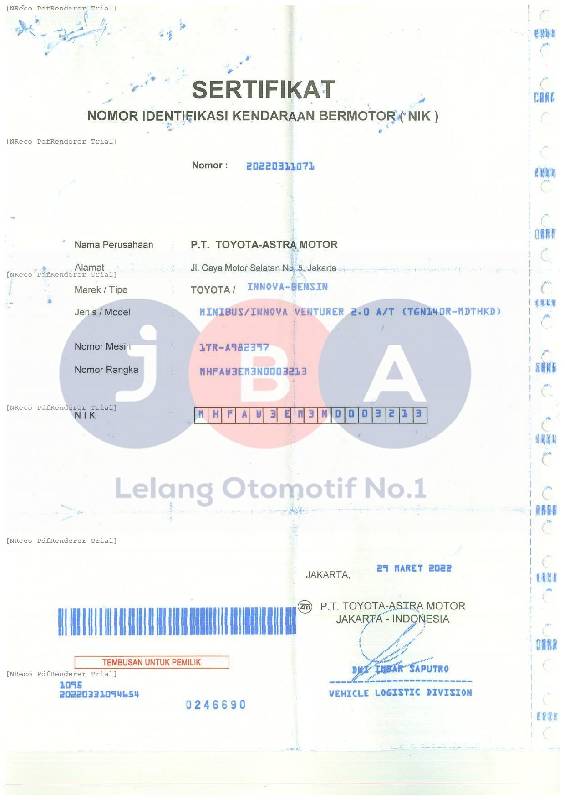 - Kondisi objek lelang dilelang apa adanya, baik kondisi fisik, mesin maupun legalitas kendaraan. Jika terdapat kekurangan/cacat baik yang terlihat maupun yang tidak terlihat, maka semua akan menjadi tanggung jawab/risiko Pemenang Lelang. Oleh karena itu, Pemenang Lelang melepaskan segala hak untuk menuntut dan/atau meminta ganti rugi atas hal tersebut kepada JBA.