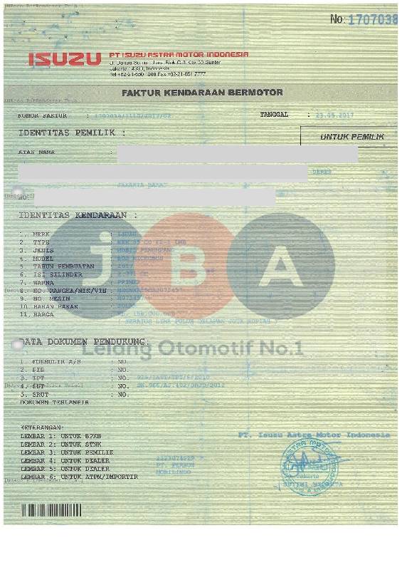 - Kondisi objek lelang dilelang apa adanya, baik kondisi fisik, mesin maupun legalitas kendaraan. Jika terdapat kekurangan/cacat baik yang terlihat maupun yang tidak terlihat, maka semua akan menjadi tanggung jawab/risiko Pemenang Lelang. Oleh karena itu, Pemenang Lelang melepaskan segala hak untuk menuntut dan/atau meminta ganti rugi atas hal tersebut kepada JBA.
