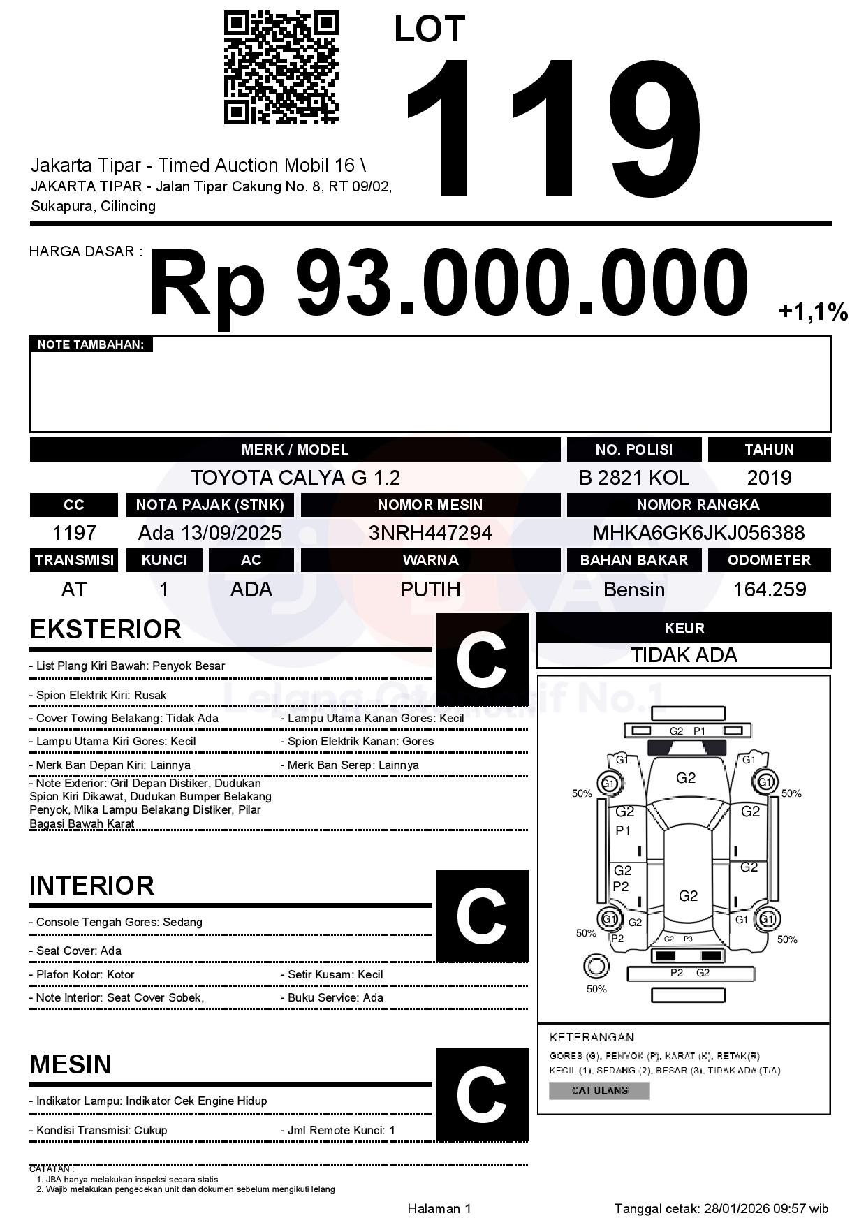 - Kondisi objek lelang dilelang apa adanya, baik kondisi fisik, mesin maupun legalitas kendaraan. Jika terdapat kekurangan/cacat baik yang terlihat maupun yang tidak terlihat, maka semua akan menjadi tanggung jawab/risiko Pemenang Lelang. Oleh karena itu, Pemenang Lelang melepaskan segala hak untuk menuntut dan/atau meminta ganti rugi atas hal tersebut kepada JBA.