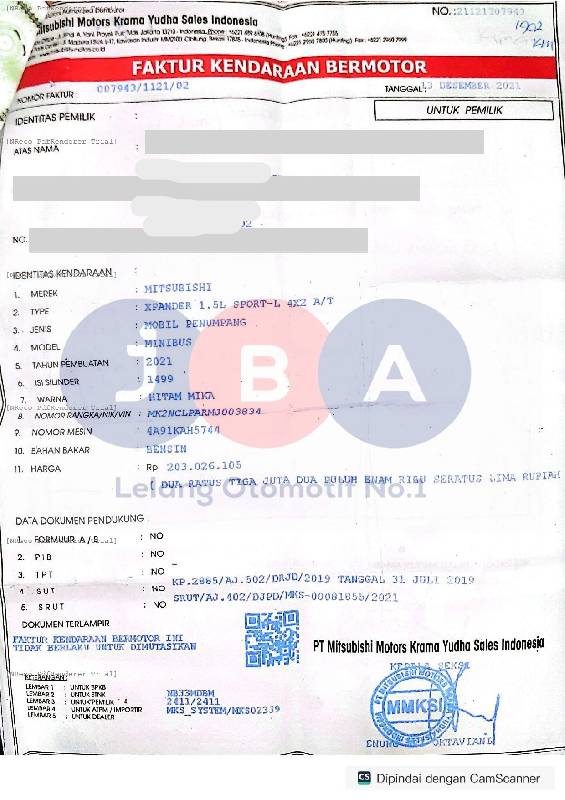 - Biaya pemindahan objek lelang dan pengurusan balik nama pada dokumen kepemilikan merupakan tanggung jawab dan beban dari Pemenang Lelang.