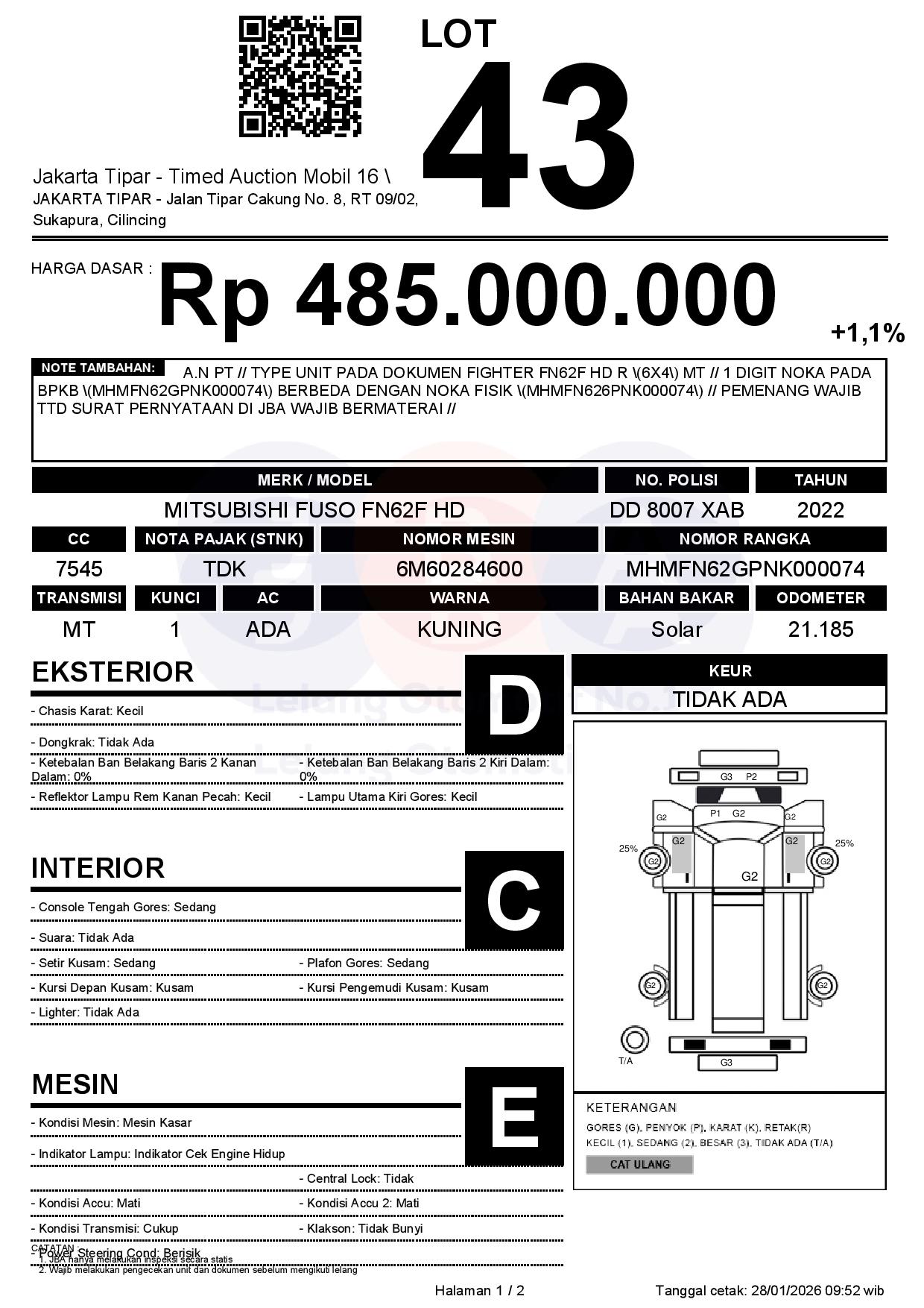- Kondisi objek lelang dilelang apa adanya, baik kondisi fisik, mesin maupun legalitas kendaraan. Jika terdapat kekurangan/cacat baik yang terlihat maupun yang tidak terlihat, maka semua akan menjadi tanggung jawab/risiko Pemenang Lelang. Oleh karena itu, Pemenang Lelang melepaskan segala hak untuk menuntut dan/atau meminta ganti rugi atas hal tersebut kepada JBA.