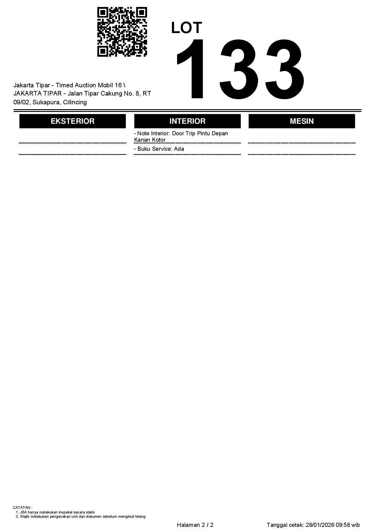 - Kondisi objek lelang dilelang apa adanya, baik kondisi fisik, mesin maupun legalitas kendaraan. Jika terdapat kekurangan/cacat baik yang terlihat maupun yang tidak terlihat, maka semua akan menjadi tanggung jawab/risiko Pemenang Lelang. Oleh karena itu, Pemenang Lelang melepaskan segala hak untuk menuntut dan/atau meminta ganti rugi atas hal tersebut kepada JBA.