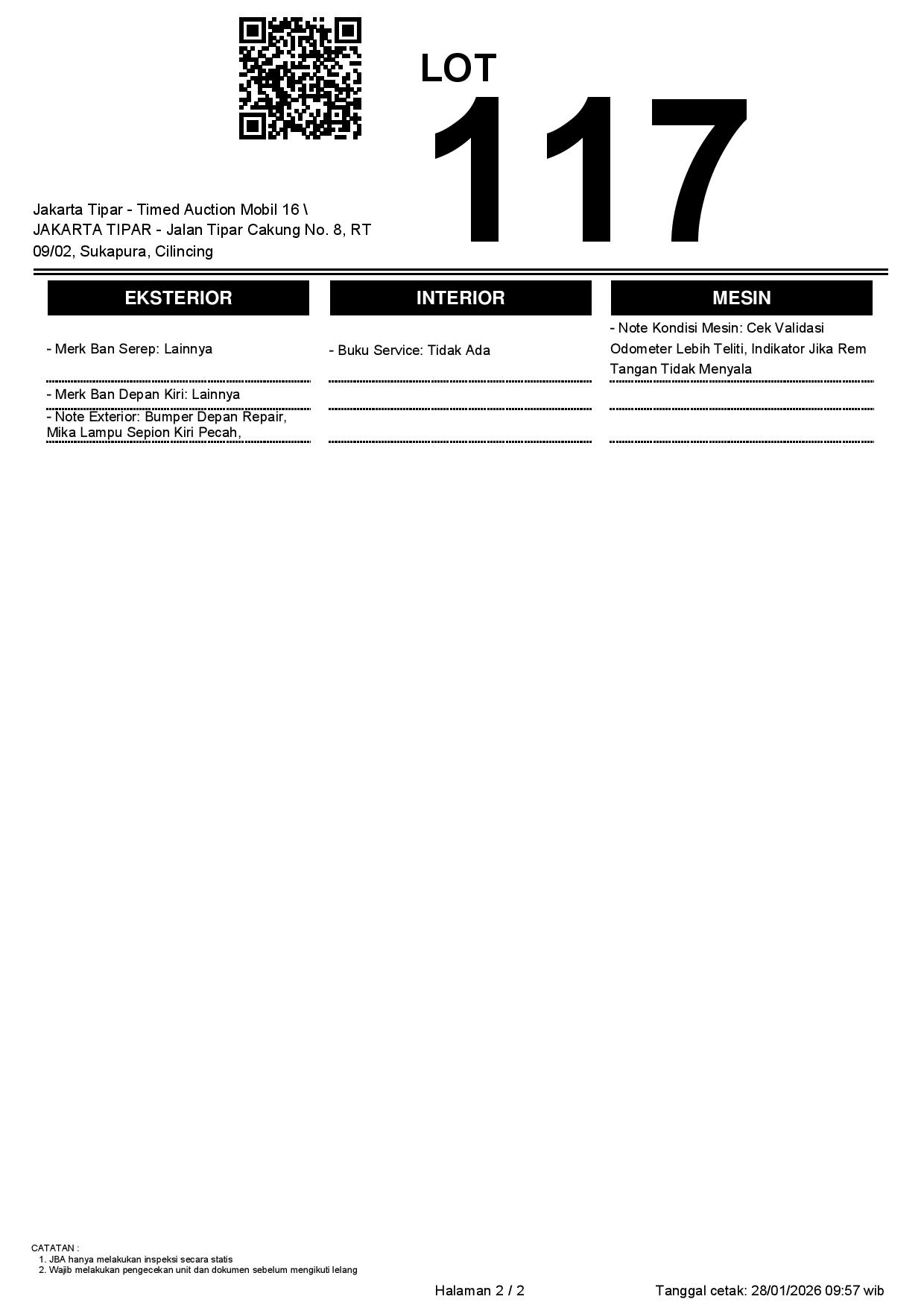 - Kondisi objek lelang dilelang apa adanya, baik kondisi fisik, mesin maupun legalitas kendaraan. Jika terdapat kekurangan/cacat baik yang terlihat maupun yang tidak terlihat, maka semua akan menjadi tanggung jawab/risiko Pemenang Lelang. Oleh karena itu, Pemenang Lelang melepaskan segala hak untuk menuntut dan/atau meminta ganti rugi atas hal tersebut kepada JBA.