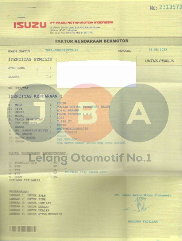 - Kondisi objek lelang dilelang apa adanya, baik kondisi fisik, mesin maupun legalitas kendaraan. Jika terdapat kekurangan/cacat baik yang terlihat maupun yang tidak terlihat, maka semua akan menjadi tanggung jawab/risiko Pemenang Lelang. Oleh karena itu, Pemenang Lelang melepaskan segala hak untuk menuntut dan/atau meminta ganti rugi atas hal tersebut kepada JBA.