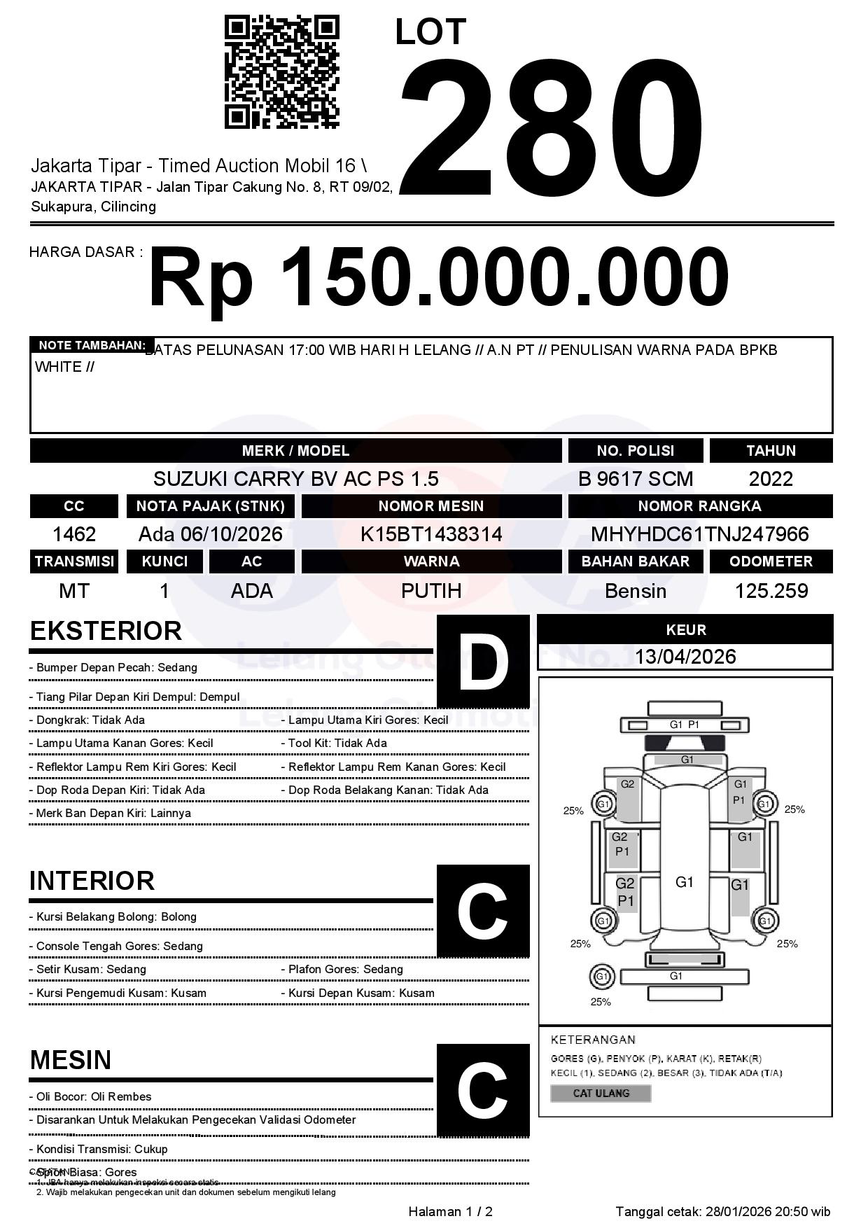 - Kondisi objek lelang dilelang apa adanya, baik kondisi fisik, mesin maupun legalitas kendaraan. Jika terdapat kekurangan/cacat baik yang terlihat maupun yang tidak terlihat, maka semua akan menjadi tanggung jawab/risiko Pemenang Lelang. Oleh karena itu, Pemenang Lelang melepaskan segala hak untuk menuntut dan/atau meminta ganti rugi atas hal tersebut kepada JBA.