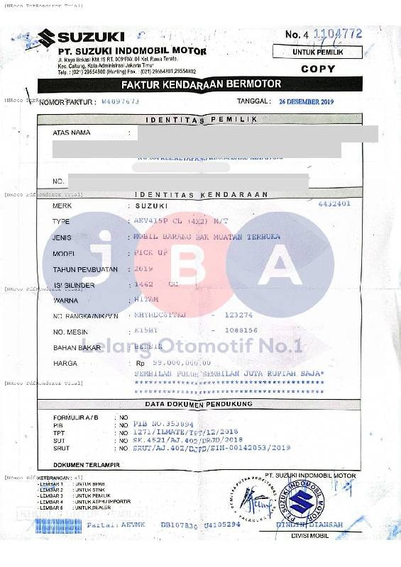 - Atas Nama : PT JBA INDONESIA