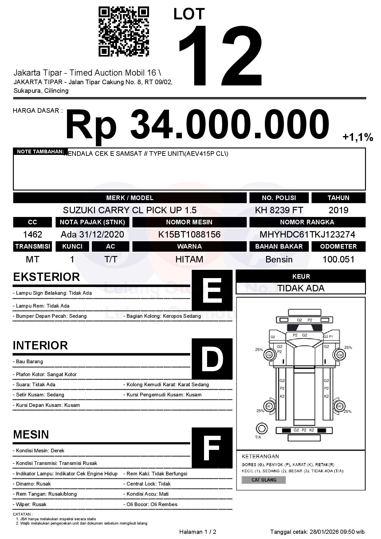 - Kondisi objek lelang dilelang apa adanya, baik kondisi fisik, mesin maupun legalitas kendaraan. Jika terdapat kekurangan/cacat baik yang terlihat maupun yang tidak terlihat, maka semua akan menjadi tanggung jawab/risiko Pemenang Lelang. Oleh karena itu, Pemenang Lelang melepaskan segala hak untuk menuntut dan/atau meminta ganti rugi atas hal tersebut kepada JBA.