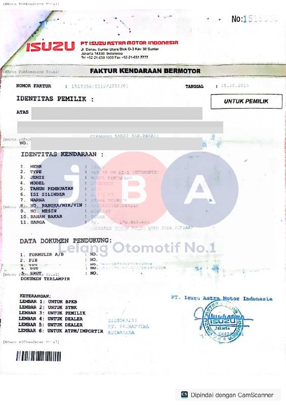 - Kondisi objek lelang dilelang apa adanya, baik kondisi fisik, mesin maupun legalitas kendaraan. Jika terdapat kekurangan/cacat baik yang terlihat maupun yang tidak terlihat, maka semua akan menjadi tanggung jawab/risiko Pemenang Lelang. Oleh karena itu, Pemenang Lelang melepaskan segala hak untuk menuntut dan/atau meminta ganti rugi atas hal tersebut kepada JBA.