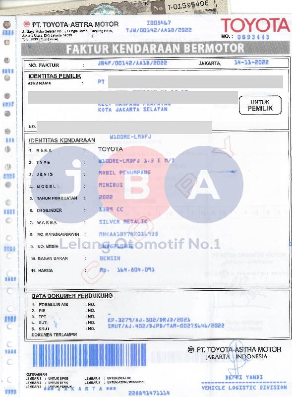 - Kondisi objek lelang dilelang apa adanya, baik kondisi fisik, mesin maupun legalitas kendaraan. Jika terdapat kekurangan/cacat baik yang terlihat maupun yang tidak terlihat, maka semua akan menjadi tanggung jawab/risiko Pemenang Lelang. Oleh karena itu, Pemenang Lelang melepaskan segala hak untuk menuntut dan/atau meminta ganti rugi atas hal tersebut kepada JBA.